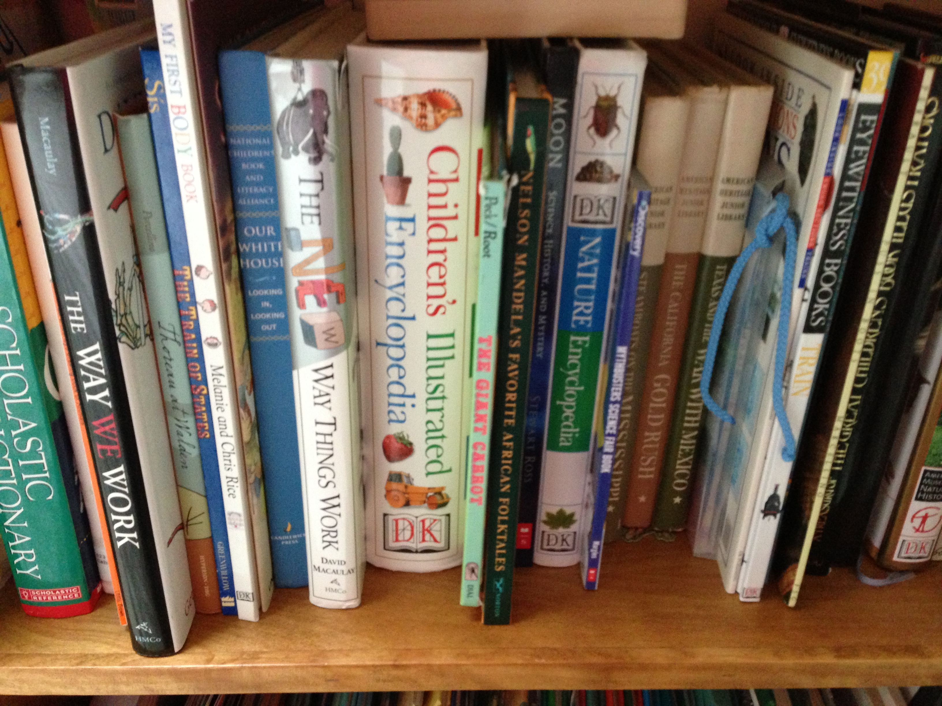 IMG_4800And the books. Which ones will he ever read? How can we know what will prove useful or interesting, just by waiting patiently for him to notice the ones placed where he sees them every day? To get rid of the easy readers seems mean, to get rid of the more advanced books seems pessimistic.