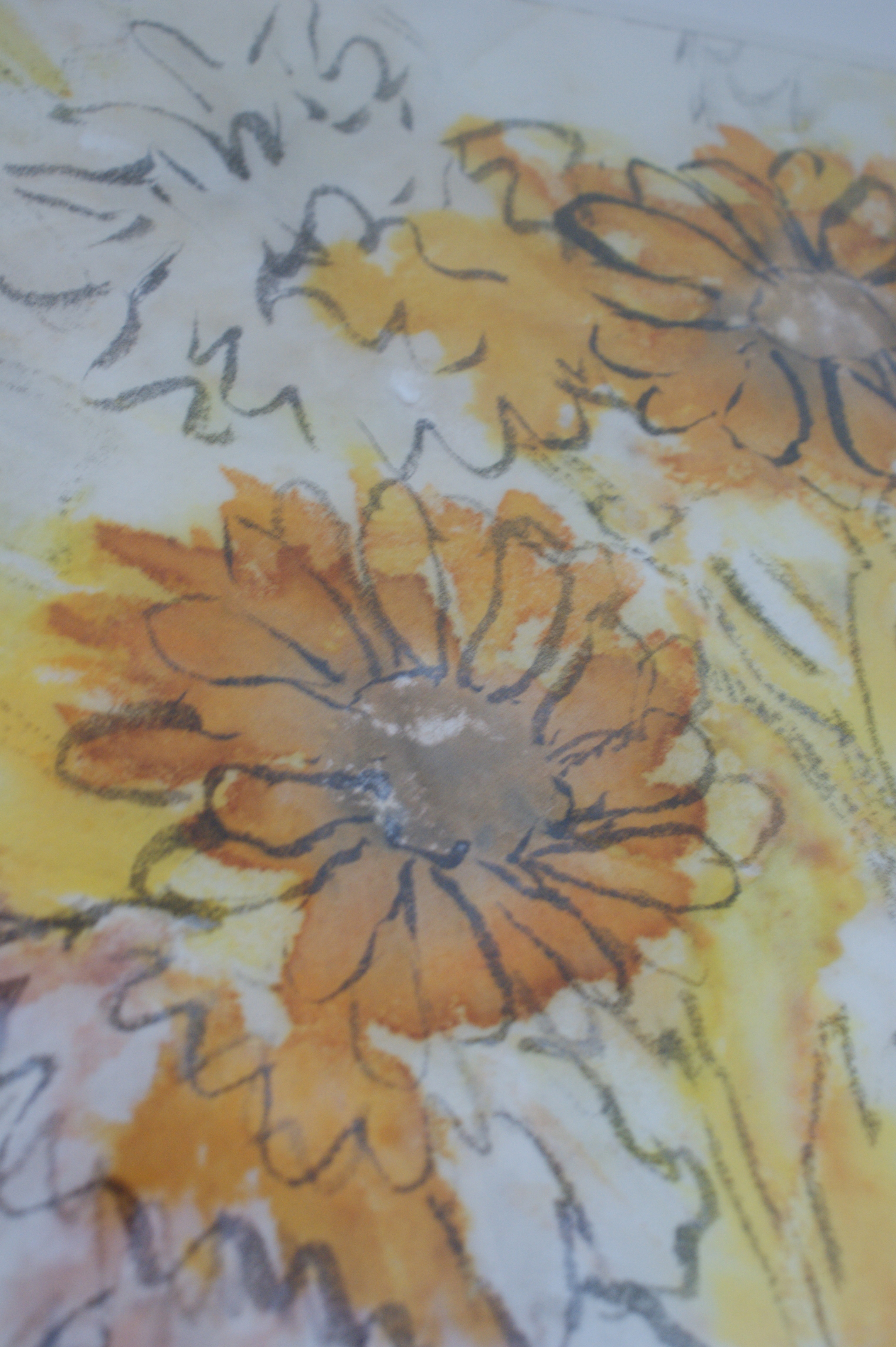 Watching the van one morning I remember thinking, “This is a kind of life I know nothing about.” And later that morning on the train to Boston I recalled my Aunt Billie, who, in a previous generation’s vernacular, “was a little slow.” The family talked about how Billie had gone to some of the same schools as Rosemary Kennedy, a remark whose significance was lost on me at the time. Billie lived with our family for a brief time (a summer, maybe?) during which I worshiped her as she made fabulous art on our dining room table. I was probably 8 or 9, and it never occurred to me to treat her any differently or feel that her faculties were diminished. She made beautiful ink and paint designs on fabric interfacing – gorgeous flowers in vibrant colors that spread deliciously through the fibers. Our mother had them framed and put them up all over the house.