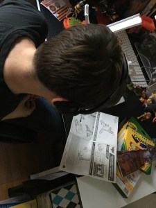 There will be challenges, but they are not the kind we can see from here. I see glimmers of anxiety. Last night I asked him to fill out the simple application form for the job training program. he was busy drawing and cast me a sidelong glance, saying, “I’m not very cheery about this.” He complained while filling it out but, as ever, was meticulous about it. Earlier in the day he was putting together a truck given to him by a thoughtful classmate. I watched him pore over the instructions – how many people do you know who follow the instructions from the outset of an assembly project? These gifts, these skills, are integral to his thinking. They will serve him well, always, and will help him make a place for himself in the world.